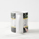 An elegant black marble pattern mug embellished with a beautiful pink floral. Personalise by adding your name to the white marble border edged in faux gold gradient. Flat printed image, NOT metallic gold.