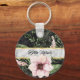 An elegant black marble pattern basic keychain embellished with a beautiful pink floral. Personalise by adding your name to the white marble border edged in faux gold gradient. Flat printed image, NOT metallic gold.