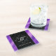 Elegant Black Marble & Purple Foil Monogram Glass Coaster