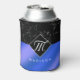 Elegant Black Marble & Royal Blue Foil Monogram Can Cooler