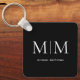 Modern Elegant Black Masculine Personalised Monogram Name keychain. Customise this timeless monogram with 2 monogram initials and full monogram name. Perfect gift for dad, groomsman gift, gift for the groom, Christmas gift idea for fathers, holiday present for grandfather, or even a thoughtful and unique gift for boyfriend.