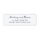 This return address label features a clean, minimalist design with centered text on a white background. The elegant cursive font at the top is paired with a smaller serif font for the address, creating a sophisticated and formal look. The black-on-white color palette emphasizes clarity and simplicity, making it perfect for personal or professional correspondence. Its straightforward layout ensures readability while maintaining an air of refinement, ideal for those who appreciate classic style in their stationery.