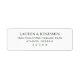 This return address label features a minimalist and elegant design with centred text on a clean white background. The black serif font adds a touch of sophistication, creating a formal and refined look perfect for official communications or special occasions. The layout is simple yet stylish, emphasizing clarity and readability through ample negative space and balanced composition. Ideal for those who appreciate understated elegance in their stationery.
