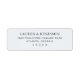 This return address label features a minimalist design with clean lines and centred text on a white background, creating an elegant and contemporary look. The colour palette is simple, using black text for maximum contrast and readability. The typography is bold and serif, giving the label a formal yet understated feel, perfect for professional or sophisticated correspondence. Its straightforward layout focuses entirely on the textual elements, making it ideal for those who appreciate simplicity and clarity in their stationery.