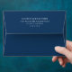This elegant wedding envelope features a modern and understated design with a clean, centered layout on a deep blue background. The typography combines a sophisticated serif font for the names with a crisp sans-serif for the address, creating a balanced and refined look. With its minimalist style and high contrast white text, this envelope conveys formality and sophistication, making it perfect for weddings or formal announcements. Its simple yet chic aesthetic ensures that it complements any wedding theme while maintaining an air of timeless elegance.