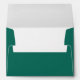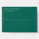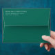 This wedding envelope features a minimalist design with a solid green background and crisp, centred typography. The classic serif font in white creates an elegant contrast against the deep green, emphasizing clarity and sophistication. Perfect for couples seeking a modern yet timeless look, this envelope is ideal for formal invitations or announcements, conveying a mood of understated elegance and refinement.