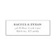 This elegant rubber stamp features a clean, minimalist design with customisable text in a classic serif font. The layout is simple and sophisticated, with the names and address centred for clarity and balance. The monochrome colour palette enhances readability and lends a timeless appeal, making it perfect for formal or ceremonial use. Its straightforward typography ensures precision, ideal for personalising invitations, envelopes, or official documents with a touch of refinement.