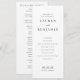 This wedding program features a minimalist and elegant design with a clean, white background that emphasizes simplicity and sophistication. The layout is structured with centered text, using a mix of bold serif fonts for the names and date, and a cursive script for the word "and," adding a touch of personalization. A straightforward sans-serif font lists the ceremony events in an easy-to-read format, while the black text on a white backdrop creates a modern and uncluttered look. Perfect for couples seeking a formal yet approachable tone, this design captures the essence of a contemporary wedding celebration.