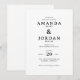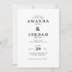 This elegant wedding invitation features a clean, minimalistic design with centered text on a white background. The monochrome color palette of black and white creates a classic and sophisticated look, enhanced by the use of serif fonts that add a touch of formality. The layout emphasizes clarity and readability, making it perfect for conveying essential details about the event. Its straightforward style is ideal for couples seeking an understated yet refined aesthetic for their special day.
