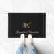 Elegant Black Monogram Names Newlyweds Wedding Doormat