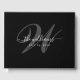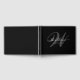 Elegant personalised black and white monogram wedding guest book with a modern script font. Easily personalise online. Matching items available to complement this minimalist, yet stylish guest book.