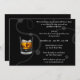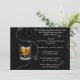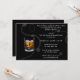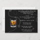Elegant Black Background New Years Eve Party Invitation featuring, a glass of bourbon, soft white swirls. Customise with your personal greeting, family names and individual names.