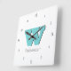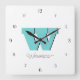 Elegant Black Numbers and Pastel Teal Monogram Square Wall Clock