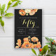 Elegant Black Orange Floral 50th Birthday Party Invitation