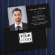 Modern, elegant, black business cards with custom logo and photo. Fonts, font colours and background colours can be changed with the design tool.