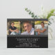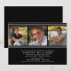 Celebrate your graduate with this graduation party invitation featuring a sleek black layout and a three-photo strip across the top. The clean stripe accents and modern typography create a classic, sophisticated look for a high school or college celebration. Personalise the name, school, date, time, address, and RSVP details to match your event.