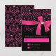 Elegant pink damask pattern featuring a pink silk bow and a shining diamond. RSVP card, reply card, response card. Stylish, feminine, girly! The perfect gift for any chic girl! Please note that this product is photo printed. There is no actual diamond, satin bow or glitter. It won't shine or sparkle.