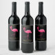 ELEGANT BLACK PINK FLAMINGO CUSTOMIZABLE WINE LABEL