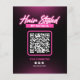 This elegant and sophisticated flyer design is perfect for promoting your hair salon or styling services. The dark background complements the pink accents, creating a luxurious feel. This design is perfect for marketing your 2025 special offers. Customise this template with your own details and images, and print it to attract new clients. The QR code functionality lets clients easily visit your website and book appointments. Make a lasting impression and grow your clientele with this premium flyer.