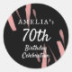 Elegant Black Pink Watercolor 70th Birthday Classic Round Sticker