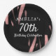Elegant Black Pink Watercolor 70th Happy Birthday Paper Plate