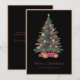 Elegant Black Pink Watercolor Christmas Tree Holiday Card