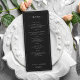 Classic wedding personalised black menu card template featuring a modern handwritten calligraphy script and a thin rounded corners frame border. +++++++++++++ Suitable for formal black tie or classic romantic weddings. Digital download and print available.