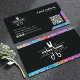 Stay connected with this modern and convenient business card! The sleek black design features a vibrant rainbow glitter detail and a QR code for easy online access to your website and social media. Perfect for stylists and salons who want to make a lasting impression and offer convenient contact options. Customise it with your details!