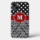 Elegant Black Red Dot Damask Monogram Case