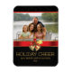 This festive Christmas holiday photo flexi magnet has a stylish black damask background. In the middle, there is a place for you to easily customise a photo of your family. Bordering the photo is a red and gold band at the top, with a candle and bells design below. Holiday Cheer is written at the bottom. You can personalise this with your family name and year at the bottom.