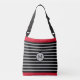 Modern elegant black, red and silver colour striped Crossbody Bag. M letter can be personalised.