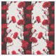 Elegant Black Red White Floral Stripes Carnation Fabric