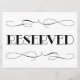 "Reserved" seating / table wedding or special event sign. Features vintage art deco inspired design with scrolls in black.