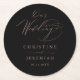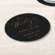 Elegant Black Rose Gold Elegant Script Wedding Round Paper Coaster