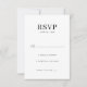 This elegant wedding RSVP card features a minimalist design with a clean white background and black serif typography, creating a sophisticated and formal look. The layout is simple yet refined, with ample negative space that highlights the essential information, including options for guests to indicate their attendance status. Customizable fields allow for personalization, making it easy to tailor the card to your event details. Perfect for conveying formality and anticipation, this card sets the tone for a memorable celebration.