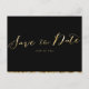 Gold foil wedding Save the Date postcards with customisable text printed on black background