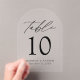 Add a modern touch to your wedding reception with our Elegant Black Script Acrylic Arch Wedding Table Number Cards. These stylish cards feature black lettering in sleek, modern typography, with “Table” in an elegant calligraphy script. Available in an arched or rectangular design, each card is crafted on a frosted or transparent acrylic background, adding a touch of sophistication to your decor. Personalise with your names, wedding date, and table number for a custom look that perfectly complements minimalist and contemporary wedding themes. To order, add each table number individually to your cart and check out when you're finished.