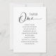Modern and elegant design printed Black White Calligraphy Script Table Number 1 Seating Chart Cards that can be customised with your text and add each table number card to your cart, one by one. Please click the "Customise it" button and use our design tool to modify this template. Check out the Graphic Art Design store for other products that match this design!
