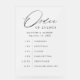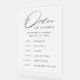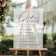 Inform guests of your wedding ceremony schedule with this Modern Elegant Black Script order of events sign! The design features a black calligraphy script contrasting with a faux frosted acrylic background. Personalise the acrylic order of events wedding sign with your names, wedding date, and wedding timeline. This design coordinates with our Modern Elegance wedding collection.