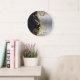 Elegant Black Silver Damasks Gold Swirls Large Clock