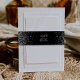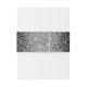 The left and right edges of this elegant modern wedding invitation belly band feature a silver faux glitter border on a black background. Personalise it with the names of the bride and groom in silver grey handwriting script over a large ampersand.