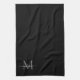 Modern Stylish Elegant Black Silver Slate Grey Monogram Script Name Kitchen Towel