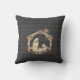 Elegant Black Silver Nativity Merry Christmas Cushion