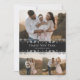 Elegant black and silver photo Happy New Year card featuring holly and berries on the front and falling snow at the back. Easily personalise this modern holiday card with your photos and text.