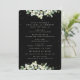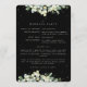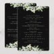 A black wedding program/order of ceremony, with a listing for a small wedding party and a thank you message on the back. Featuring an edging of hand painted snowberries and eucalyptus and a scattering of dots. All text is fully editable. Please view this Collection in my store for programs with alternative wording/layouts and in different sizes/colours/shapes. Coordinating items also available.