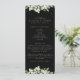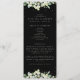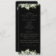 A black wedding program/order of ceremony, with a condensed ceremony outline and thank you message on the front and a listing for a large wedding party on the reverse. Featuring an edging of hand painted snowberries and eucalyptus on the front and a stem on the back. All text is fully editable. Please view this Collection in my store for programs with alternative wording/layouts and in different sizes/colours/shapes. Coordinating items also available.