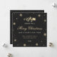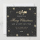 Elegant black Merry Christmas and Happy New Year card featuring falling snow, snowflakes and Christmas bells.
