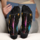 Elevate your holiday style with these elegant black socks adorned with shimmering starry accents in gold, red, and purple hues. Perfect for adding a festive touch to your outfit or gifting a unique winter accessory. Celebrate the season with celestial elegance!