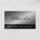 Plain, Simple, Modern Classy Two Sided, Script Font on Brushed Steel Effect, First Name Text Only, Professional Business Card ideal for Female Designer, Interior Decorator, Cosmetologist, Hairdresser, Hair Stylist, Project Manager, Event Planner, Wedding Planning, Public Relations Consultant, Occupational Therapist, Dentist, Psychologists, Psychiatrist, Realtor or Real Estate Agent, Attorney, Lawyer, Solicitor, Paralegal, Chiropractor, Cleaner, Veterinarian, Interpreter & Translator,Sales Representative / Rep, Housekeeper, Social Worker and many other professionals.