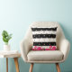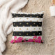 Elegant Black Stripes Gold Glitter Dots Pink Roses Cushion